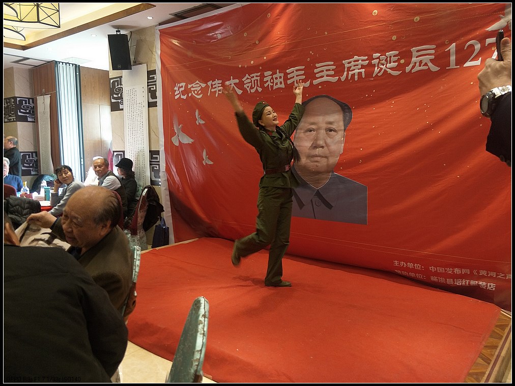 与会者齐声歌唱“东方红,太阳升,中国出了个毛泽东,他为人民谋幸福,他是人民大救星……”