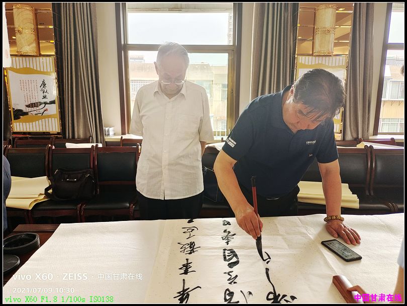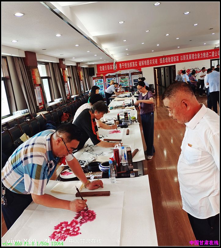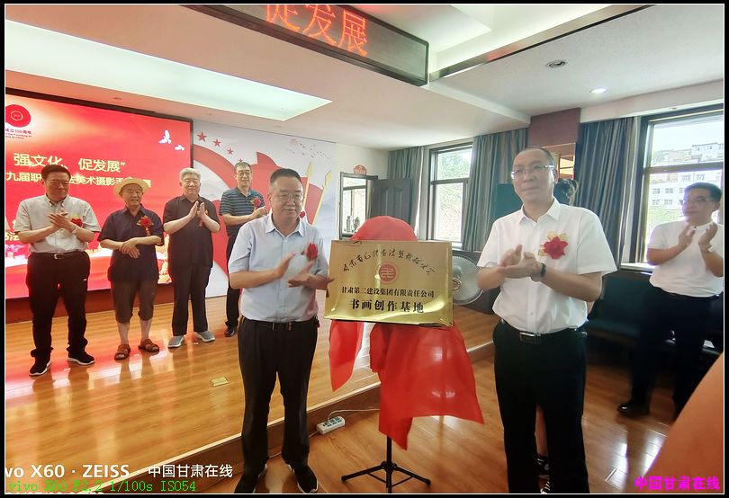 现场诚邀甘肃建投职工书画协会与甘肃省毛体书法艺术研究会,开展文化艺术交流学习活动,甘肃六建集团党委书记、董事长殷同春及其班子成员,甘肃二建集团党委书记、董事长吴军及其班子成员,晏家坪街道党工委负责人以及新闻媒体记者,甘肃省人大原副主任、甘肃省毛研会名誉主席杨作林,甘肃省政协原副主席、甘肃省毛研会名誉主席李沛文,甘肃省政府原副秘书长、甘肃省政府政策研究室原主任、甘肃省毛研会终身名誉主席魏武峰,省委宣传部原副部长、《甘肃日报》社原社长、党委书记、中书协会员、甘肃省毛研会名誉主席张瑞民,甘肃省文联原党组书记、副主席、中书协会员甘肃省毛研会名誉主席冯树林,省纪委原正厅纪检监察专员、中书协会员、甘肃省毛研会名誉主席哈建设,甘肃省工信委原副主任、正厅级巡视员甘肃省毛研会名誉主席张富奎,甘肃省文联原二级巡视员、省书协原副主席中书协会员、甘肃省毛研会名誉主席刘满才,兰州市政协原副主席、甘肃省毛研会名誉主席李继彬,中国书协会员、甘肃省青年书协副主席,甘肃省评论家协会书法专业委员会秘书长倪永伟,甘肃省毛体书法艺术研究会主席、省书协会员薛明福,甘肃丝绸之路协会书记谢凡,兰州国辉书画院院长张国辉,中书协会员、第十二届中书协国展国手颉自强,团省委少工部部长、甘肃省毛研会常务理事包平元,甘肃省毛研会艺术顾问李润芳。甘肃省毛体书法艺术研究会副主席:李建民,刘旭升,辛万毅,杨锁记。甘肃省毛体书法艺术研究会秘书长、省书协会员刘大林,甘肃省毛体书法艺术研究会副秘书长、省书协会员马建兴,甘肃省毛体书法艺术研究会副秘书长、省美协会员呼福果,甘肃省毛体书法艺术研究会常务理事及会员:楊桂花;刘凡;鞠金霞;周菊兰;郭同珍;杨树珍;金艺帆。中国网甘肃在线总编辑、甘肃省毛体书法艺术研究会宣传部副部长赵小春,甘肃省毛研会宣传部副部长、网络编辑、记者马力克参加了此次活动。并为“甘肃省毛体书法艺术研究会甘肃第二建设集团有限责任公司书画创作基地”举行挂牌仪式。打造企业与文化相结合、共同交流、提高企业文化建设,营造积极健康向上的企业氛围,增强员工归属感、荣誉感。为企业软实力建设做出贡献。