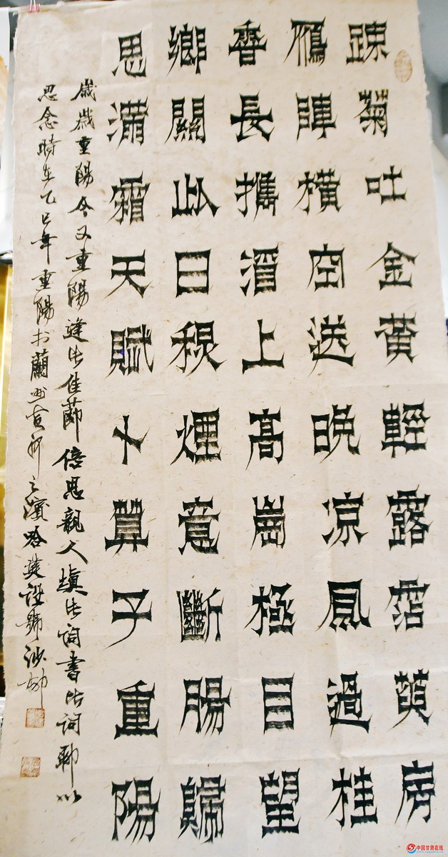 中国甘肃在线兰州讯(赵小春 宋明万报道)岁岁重阳,今又重阳。在中华民族“九九重阳节”到来之时,恰逢甘肃西部缘书画院成立九周年。一场以“翰墨颂华章,讴歌新时代;挥毫写春秋,重阳送祝福”的书画笔会日前在兰隆重举办。
