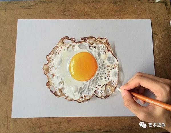 Sushant Rane的每幅作品都以假乱真,阴影、光线、褶皱都在他笔下仿若实物,画的煎蛋看起来好好吃。