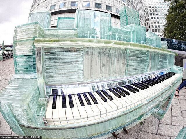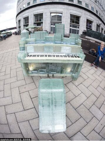近日,英国伦敦,艺术家Karlis Bogustovs打造了一台纯玻璃钢琴,整架钢琴晶莹剔透,看起来十分精致高贵,并在街头向行人展示,共民众体验。据悉,这些玻璃材料都是普通窗玻璃。(图片来源:Sipa Photo)