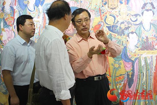 记者了解到,本次展览,以“澄怀味象”为主题,以中国艺术研究院所辖中国画院、中国油画院、中国工笔画院、中国美术创作院、中国书法院为主要创作团队,同时,还邀请了对敦煌彩绘有着重要传承与贡献的部分甘肃及广东的艺术家共同创作,形成了近百位艺术家的创作团队。一幅幅凝聚着中国当代艺术成就和文化内涵的精品力作,充分体现和展示了艺术家们的艺术功力、艺术才华和艺术修养。这些作品是艺术家们精湛技艺、学术思辨、自然感悟、人文情怀的理性流露和激情释放。中国艺术研究院主要以在职艺术家团队用书画创作的形式支持本届文博会,这不仅体现他们的艺术情怀,更体现他们的家国担当。