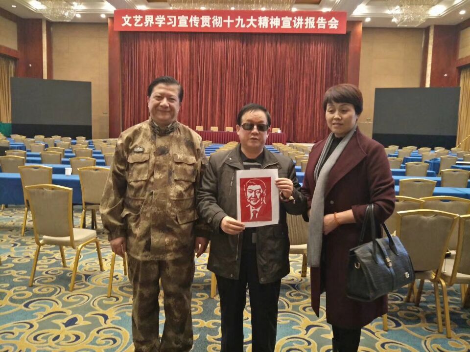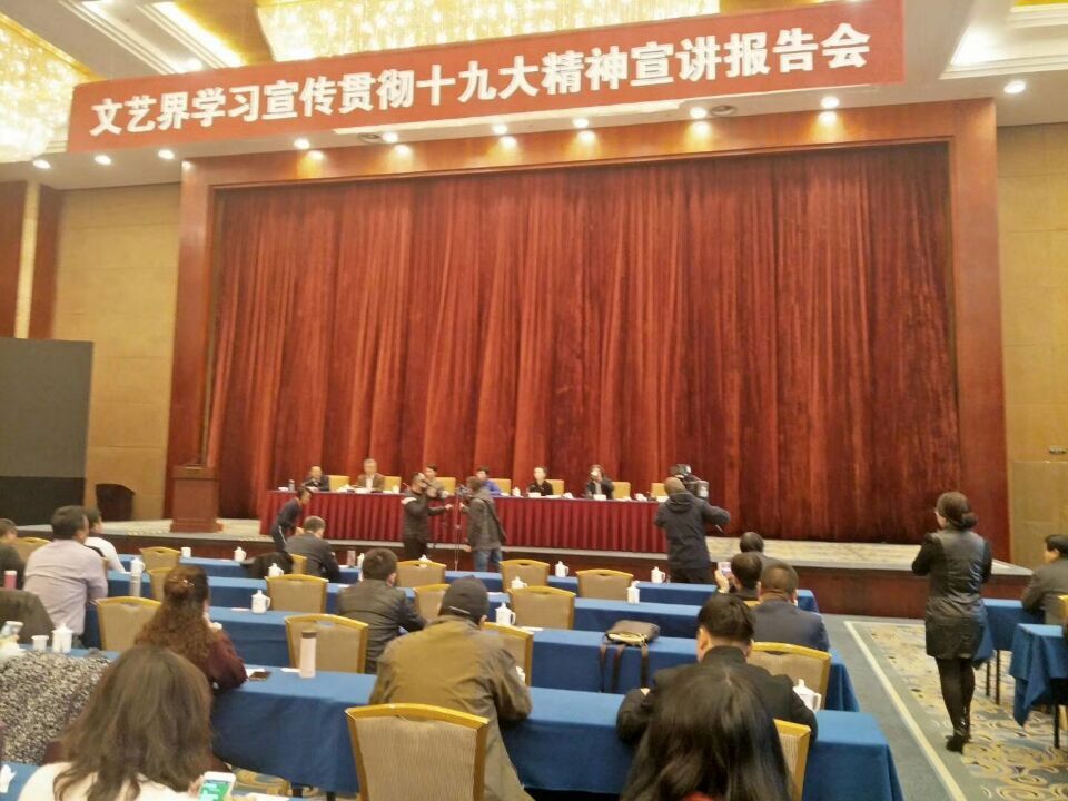 文艺界学习宣传贯彻十九大精神宣讲报告今早在兰州宁卧庄宾馆二号楼宴会厅召开,甘肃省文联主席邵明主持大会,来自中国文联杨柏、宋宝珍、于海、李雪飞、吴为山等五位报告团成员做了精采报告,甘肃省文联系统各行业的代表三百多人出席报告会,整个大厅一直充满着热烈高昂的气氛。五位报告团成员热情洋溢的回答了参会代表们的提问,并对甘肃文化提出了宝贵的指导意见。(图/文 王新年)