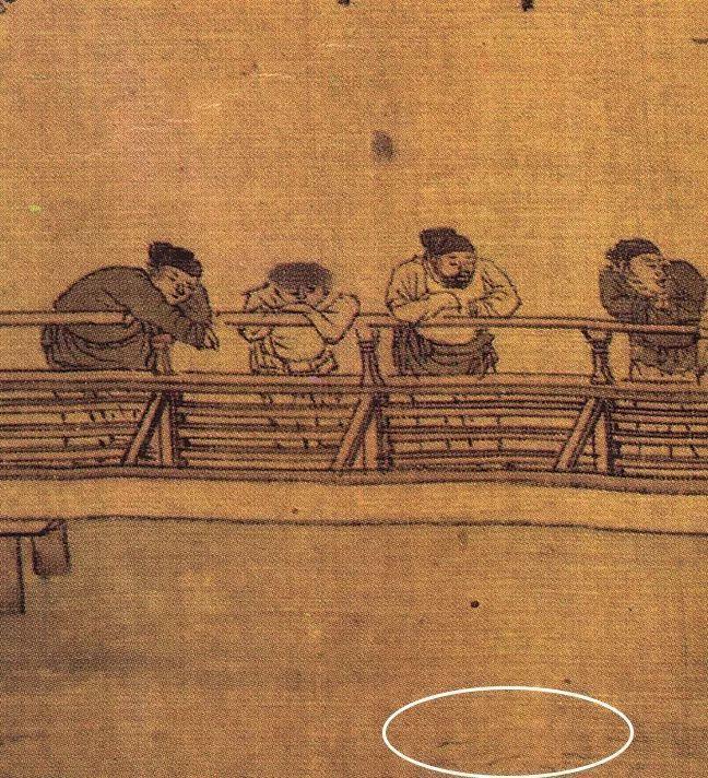 下图中几个书生打扮模样的,正趴在栏杆上看河中的鱼,据说这是当时清明期间的游玩活动之一,含有“上河”之意。仿佛看到了过节期间去公园游湖的萃花本花……