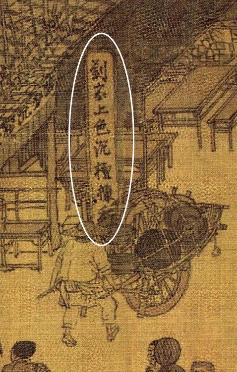 这是一家卖香料的店,沉香、檀香、乳香什么的,都是当时士大夫的最爱,其中沉香被推崇为众香之首,市场价一片万钱,妥妥的奢侈品啊!沉香在当今市场上,价格也是高不可攀。