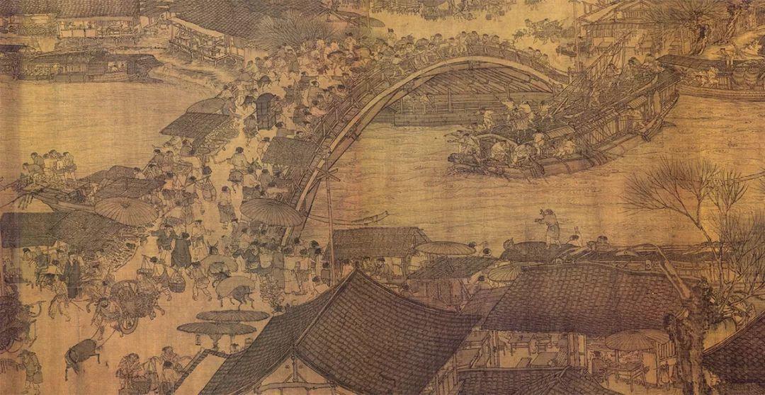 其实呢,画家张择端画《清明上河图》并不仅仅为了表现当时的民俗,其中也隐含着自己对当朝政治形势的忧虑。比如画面中段无比拥挤的虹桥、即将发生的船撞桥事件、城门没有把守的侍卫、象征文武官的车和马互不相让的场景……