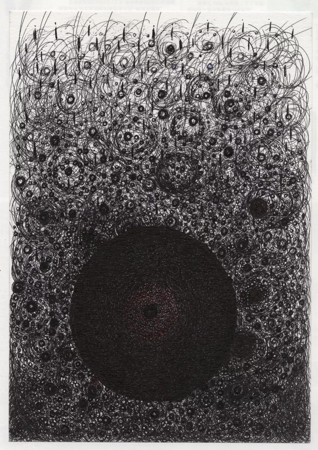 《泡泡宇宙(黑碟)》 水彩纸、中性笔 29.7×20.9cm 2017