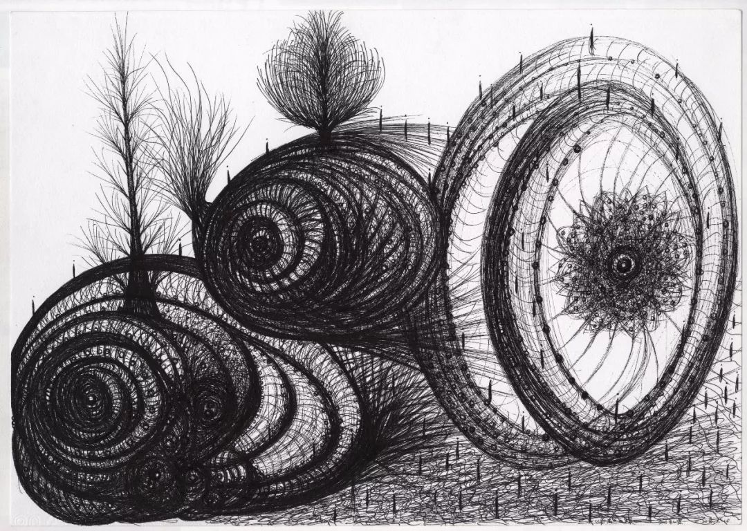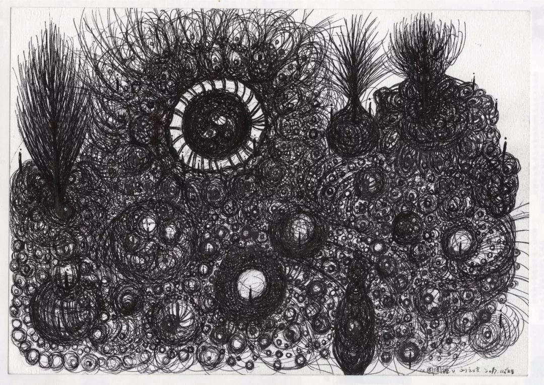 《圈圈缠(丹山)》水彩纸、中性笔 20.9×29.7cm 2017