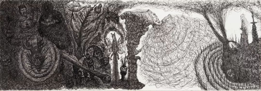 《山化》局部 纸上中性笔 460×28厘米(画心) 2014