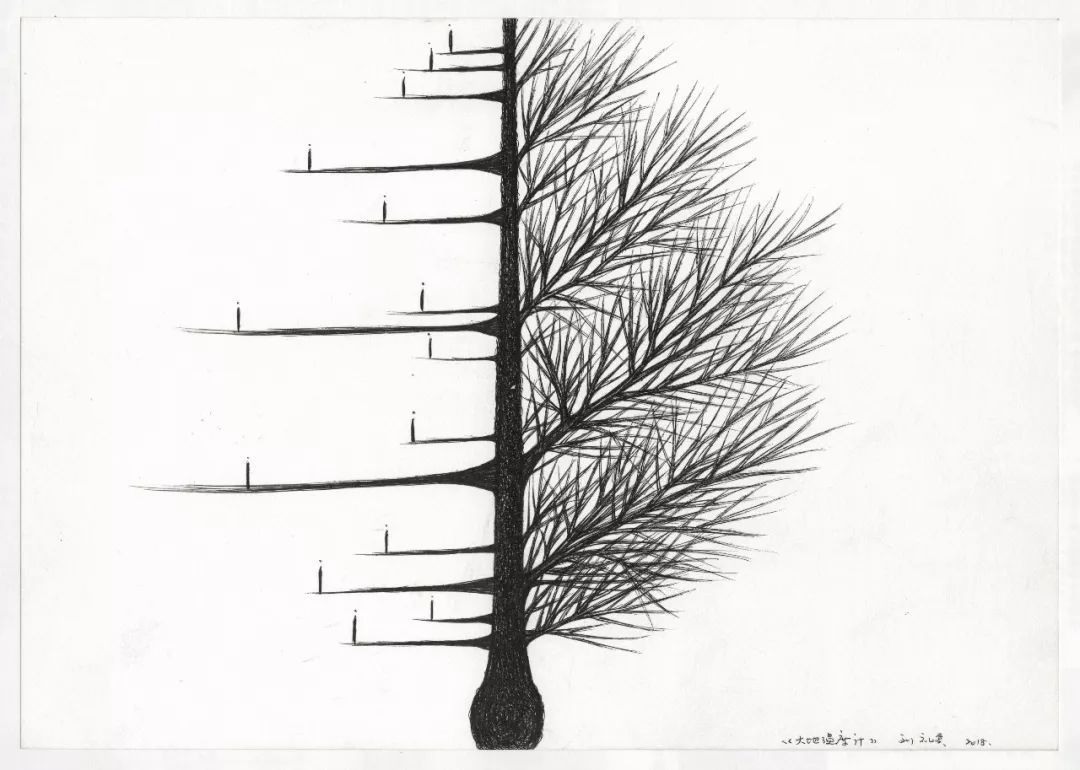 《树》 水彩纸、中性笔 42×29.7cm 2017