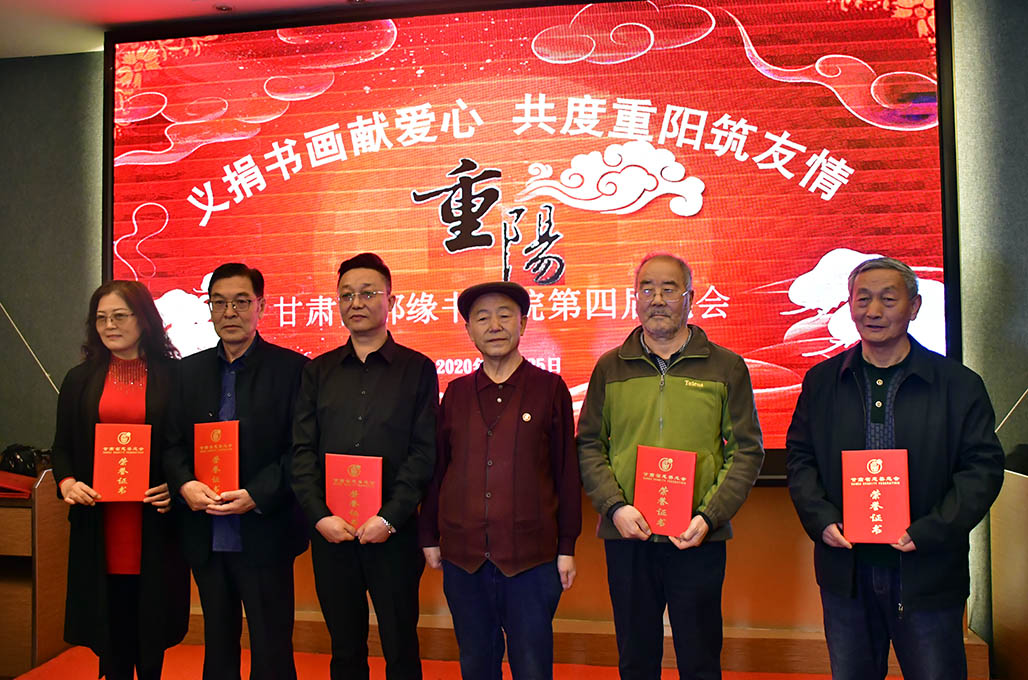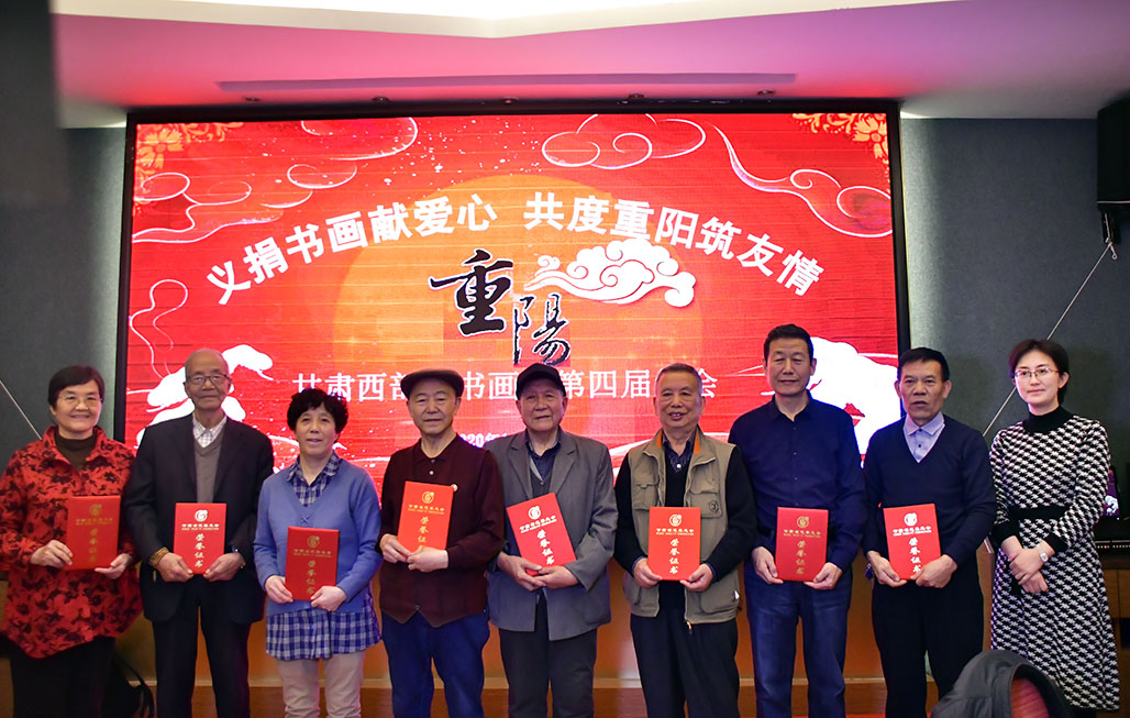 中国甘肃在线兰州讯(赵小春报道)最美不过夕阳红,重阳佳节乐彤彤。2020年10月25日上午,为欢庆重阳节到来,为大力弘扬中华民族尊老敬老的传统美德,在兰州市城关区酒泉南路菜根香酒店北三楼,举办甘肃西部缘书画院第四届“义捐书画献爱心,共度重阳筑友情”笔会活动。并为义捐书画作品的艺术家颁发荣誉证书,翰墨结缘,共度重阳佳节。