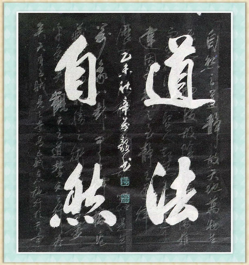 再看他的行书作品,诸如《厚德载物》、《道法自然》、《天道酬勤》、《云水禅心》、《春华秋实》以及书写的唐诗、宋词乃至名言警句等作品,墨融神畅,书写自若,变化多姿,其偏正、松紧、奇正、粗细、浓淡、虚实、缓急、仰扬、顿挫、快慢处理谐恰,富于律动感,撼人心魄,表现出了较高的观赏性、思想性和艺术性。