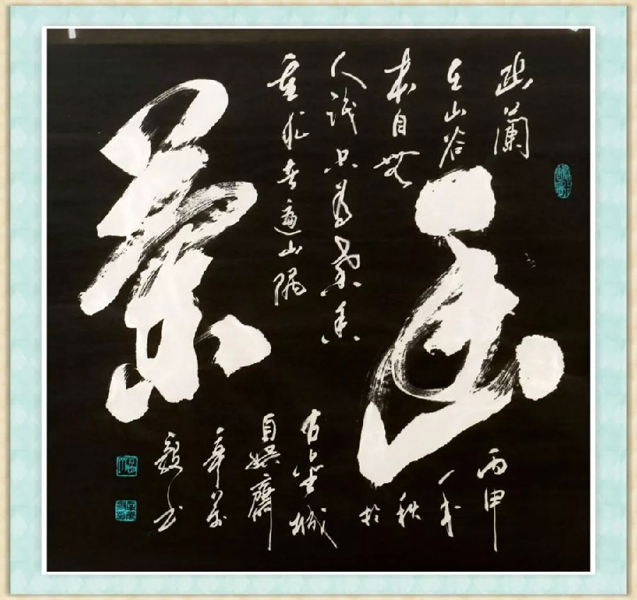 “激扬文字”,是辛万毅先生对中国五千年传统文化精髓深度领悟后开创的艺术表现手法。他秉持“书画同源”之道,创造性地把中国汉字恢复到其本源境界及多重魅力,即“复魅”。以传统书法元素为先导,以汉字的结构形体之美为基本构架,以现代水墨结合现代艺术构成作为辅助,以深度挖掘所选择的书写内容,即汉字当中所包含的丰富而深刻的文化内涵为旨归进而表达本人不与他人相同的艺术理念和思想感情,故而形成了一种韵律感和节奏感,让书写的律动与生命的律动合二为一,从而创造出了一个有生命、有血肉、有气息的书写世界。