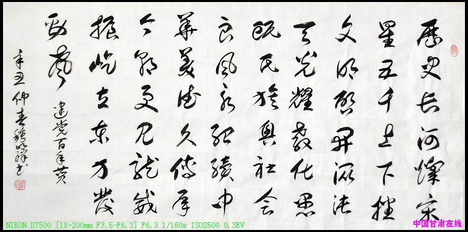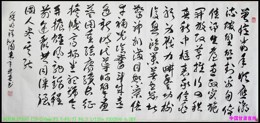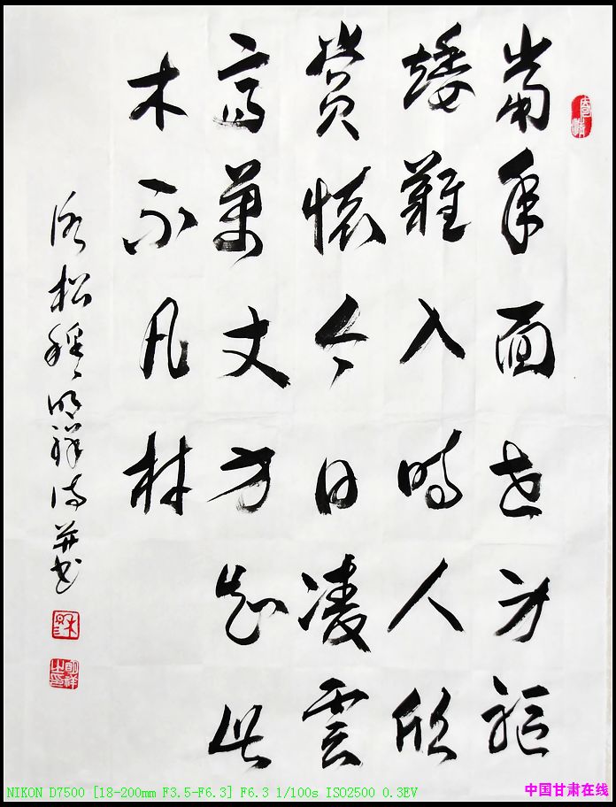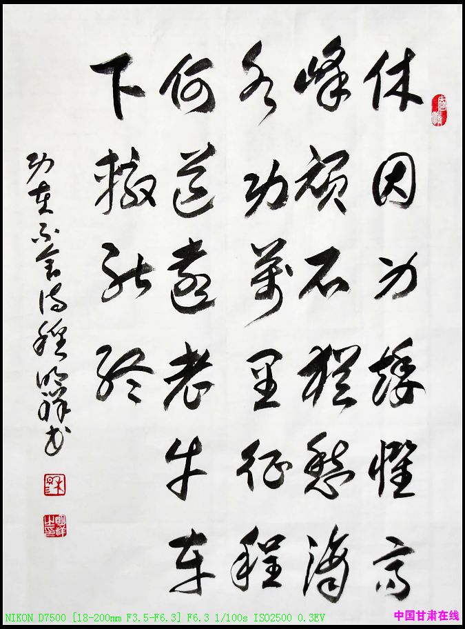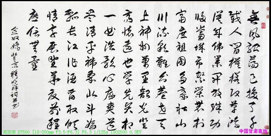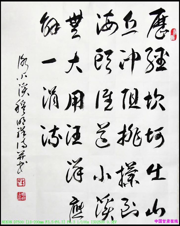 以前笔者只知穆明祥先生是一位知名度很高的诗人、作家,他不仅写了大量的中华诗词(包括现代诗)、散文、杂文、时评、祭文、赋、书画评论(给甘肃省百余位著名书画家撰写过评论)等文章,不知道穆先生还写得一手好字。通过对穆先生的数十幅书法作品拍照之机,总算对穆先生有了另一方面的了解。