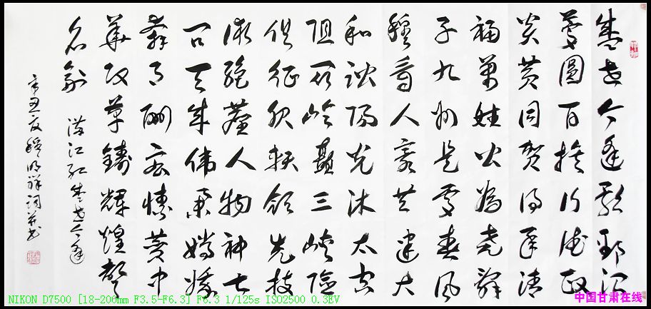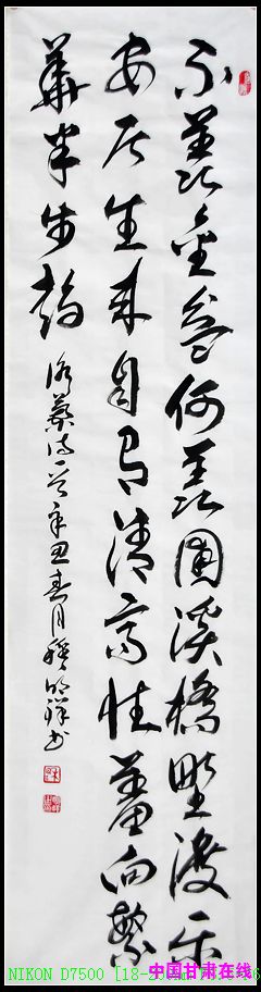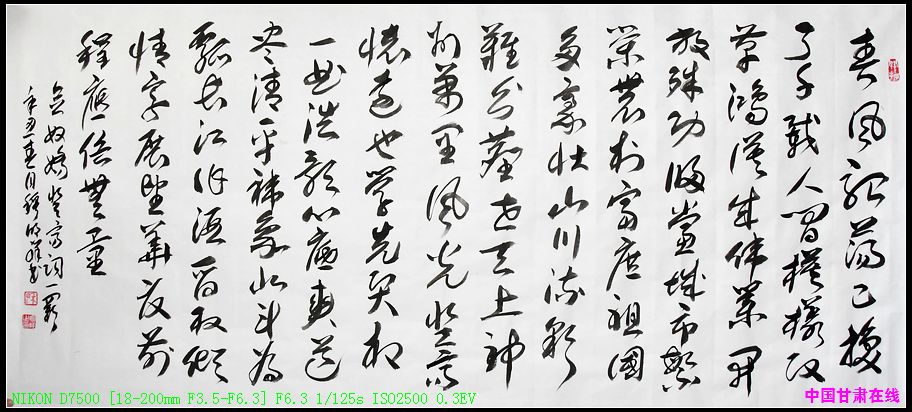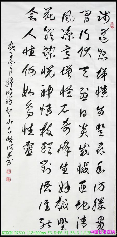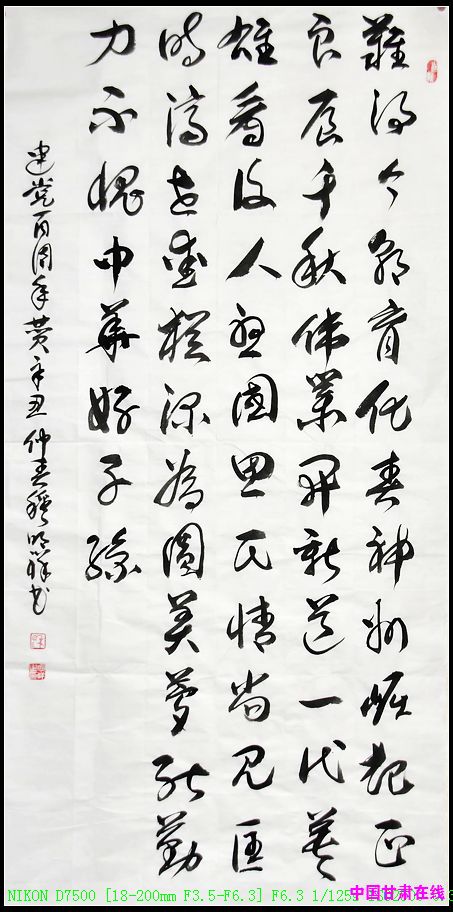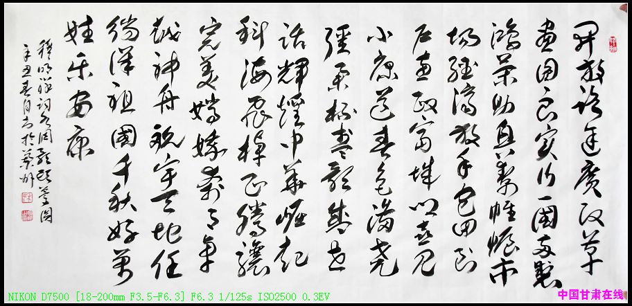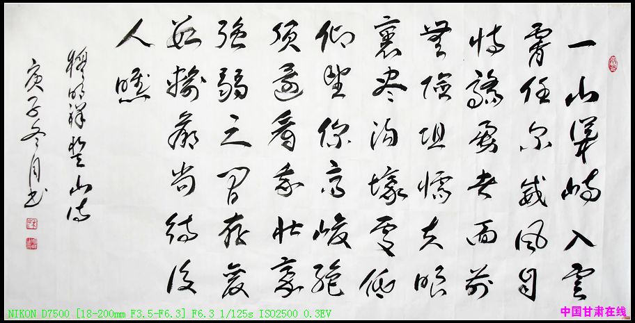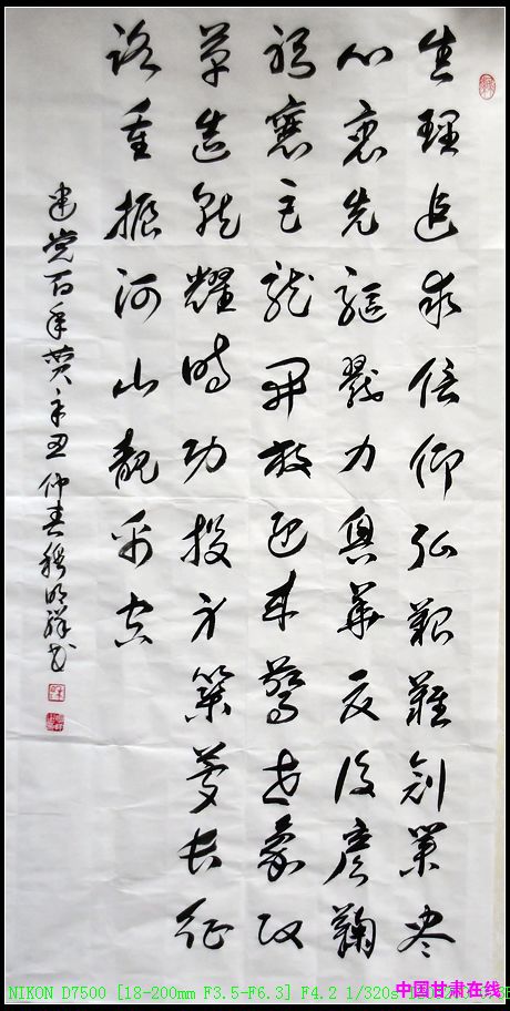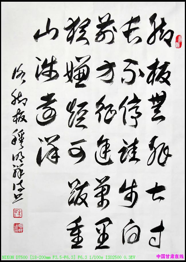 以前笔者只知穆明祥先生是一位知名度很高的诗人、作家,他不仅写了大量的中华诗词(包括现代诗)、散文、杂文、时评、祭文、赋、书画评论(给甘肃省百余位著名书画家撰写过评论)等文章,不知道穆先生还写得一手好字。通过对穆先生的数十幅书法作品拍照之机,总算对穆先生有了另一方面的了解。