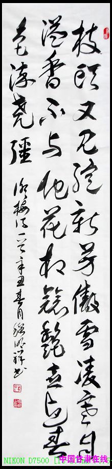 穆先生非常谦虚,不断强调自己初学,没有接受过专门的书法教育,也没有拜师学过书法,更没有很好地临过字帖,只是因自己在文学创作方面略有成就,别人冲着对自己文学作品的喜好,想求副书法作品以作留念,才“逼”其不得已而为之的。但经笔者的一位对书画颇有造诣的同仁评价,穆先生不仅临过多种字帖,而且功力匪浅,非十年八载临池功夫而不可得之。言其书体中既有孙过庭《书谱》之艺韵,又有标准草书之墨痕,能看得出是汲取了众多书家艺术营养而自成风格并见诸于笔底的。