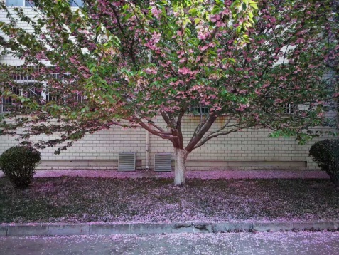 庭前一树花多姿,更绽放 ,燕归来。汀芷慕晖蜿蜒驿。绰英舞絮,浅草低树,月溶云水依。