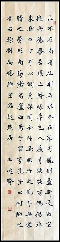 王述贤,一位集书法创作和声乐演唱于一身的艺术人才,现为中国书法家协会会员,甘肃省书协楷书委员会委员,甘肃改琴书法教育奖励基金会签约书家,通渭县书法家协会副主席,通渭县教育书画协会副主席,通渭县音乐家协会副主席,通渭县十大杰出青年。字一良,号乃吾,别署超然居主人。师从著名书法家、中书协培训中心专家工作室导师钱松君教授。书法遍临诸体,尤以魏碑楷书见长。作品入展全国首届楷书展、首届“西狭颂”全国书法大展、首届“云峰奖”全国书法大展、第四届“中国西部书法篆刻展”、全国第十一届书法篆刻作品展、第二届“沙孟海杯”全国书法篆刻作品展、“天下大同•魏碑故里”全国书法名家作品邀请展等国内多项书法大展。
