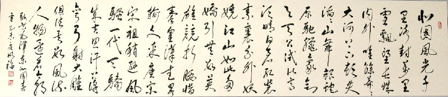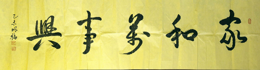 近年来,他在继续坚持临帖摹碑的同时,又对“二王”的行书产生了极大的兴趣,且颇下功夫。无论春夏秋冬、寒来暑往,其抽时挤空坚持临池,从未懈怠。其凭着一股子韧劲和持久恒心,以及对书艺事业的一份执着,几乎把工作之余的所有时间都用到了临习王羲之《兰亭序》、《王书圣教序》上,更是临习到了入迷的境界。就近两年而言,对一部长达324字的书法巨制《兰亭序》,临习少说也有一两千遍之多,真可谓是笔不离手,梦寐以求。在通过读帖摹碑,研习书理,临池运化中,渐渐领悟到了王书雄厚的笔墨内蕴和深奥的书理真谛。这从他近日背临的《兰亭序》四尺对开六条屏中不难看出端倪:就其整体布局、开合把控、墨色调配、字体规度、书风意蕴等诸方面而言,虽不敢说有多少神似,但起码在形似方面应该说是颇有几分“姿色”的。特别是对《兰亭序》中21个“之”字的临写,可谓是煞费了一番苦心的。所有的书家无所不知,汉字中笔画越少的字就越是难写。要在一幅作品中有所变化地写出21个不同形体的“之”字来,其难度可想而知。王书中的这21个“之”字,分别以行、楷、草等不同书法形体写成,且字形各有千秋。这除了像王羲之那样的千古书圣可为外,还有何人能为?就临摹而言,尽管是“照猫画虎”,如没有扎实的基本功力,也是很难做到形体上的“惟妙惟肖”的,且不要说是背临。前几日,其背临的《兰亭序》,经省上几位书界权威人士看后,均给予了一定的好评,认为在临习《兰亭序》上取得了一定的成就,希望能够继续用功,坚持不懈,再上层楼。最终走出《兰亭序》,创立自己的书艺风格。
