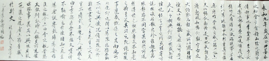 近日得暇应邀,欣赏到了薛先生的部分书作,包括其背临王羲之的《兰亭序》。通过对薛明福先生背临的《兰亭序》的观赏,结合我省书界权威人士中肯的评价,从而不难看出薛明福先生在书艺方面的用心与用功。当然,除了用心与用功之外,也不难看出其是具有一定的的书艺天赋和灵性的。因为,一个书法家的天赋与灵性,决定着其在书艺道路上的发展与前景。只要其在书艺上能够充分利用自己的天赋与灵性,并继续坚持用心与用功,相信一定能够走出属于自己的一条书艺道路来,成就其书艺事业,圆其书法家的由衷梦想。