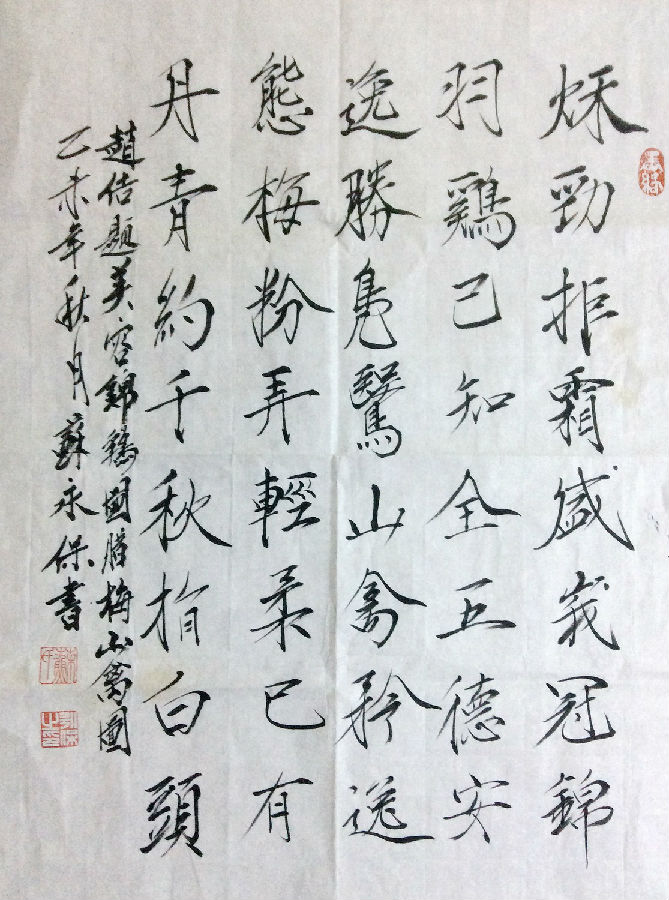 自幼受先辈的熏陶,就受了传统文化教育,自幼喜爱书画,现已书法见长,经过大量临帖和学习相关理论,视频资料,在辛老师的指导下,初显出书体端庄挺秀,对欧体,赵等碑帖的不断练习,打下了较好的书法基础,得到了周围同事,朋友的肯定与赞誉。擅长楷,行,草。对瘦全体情有独表。书艺思路是“鉴古集精,取诸家之长;,走继续创新之路,十几年勤耕不辍,有了一定的书法功底。将古代书法之美与现代艺术之美柔和,法取自然,不断完善和提高!
