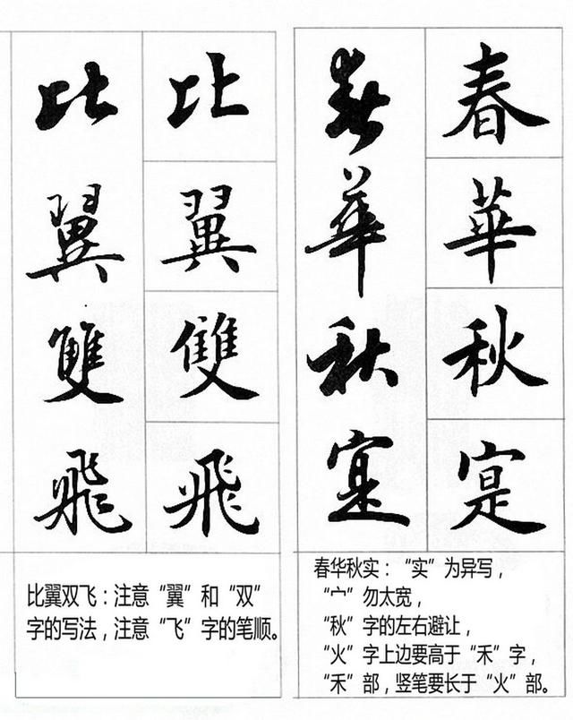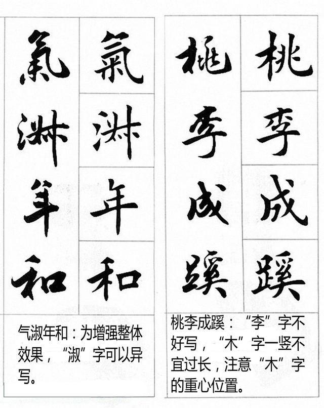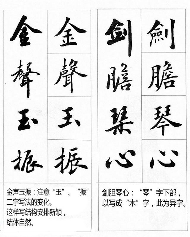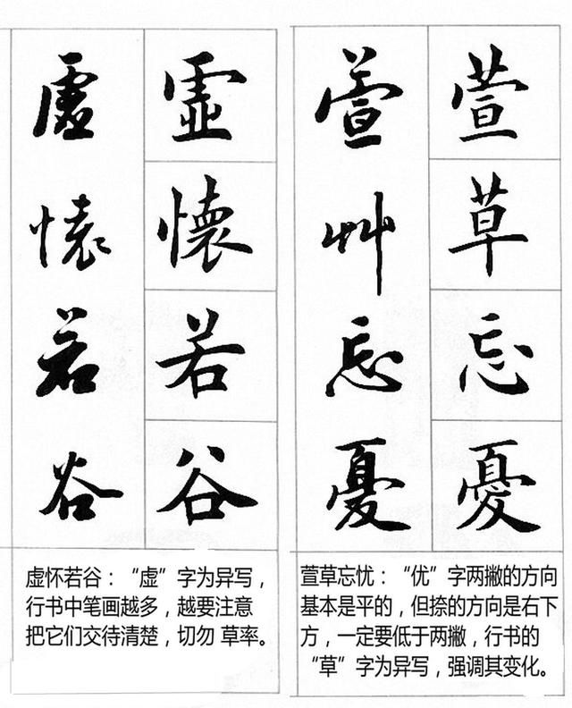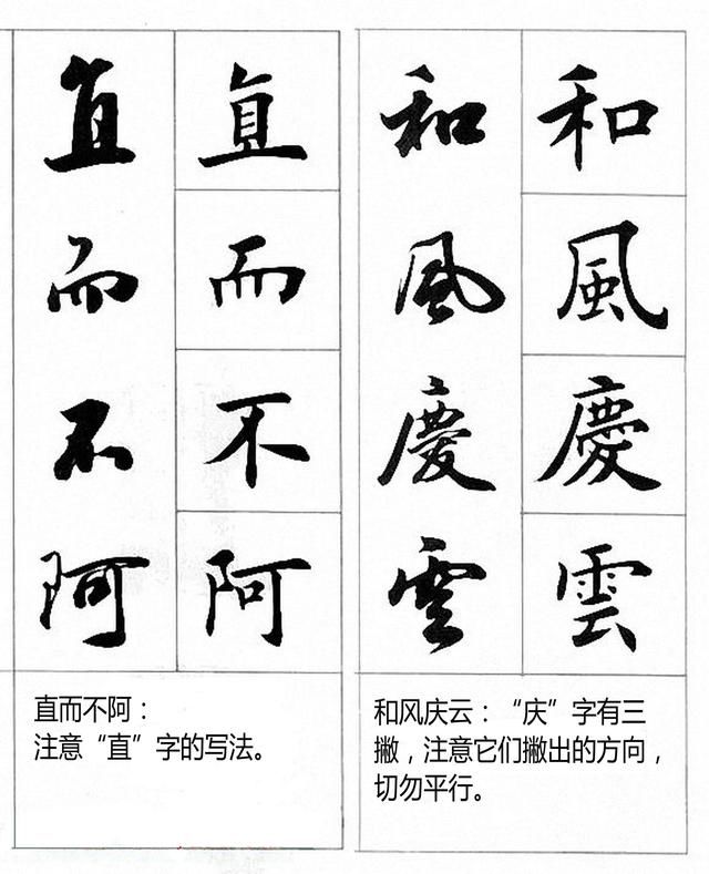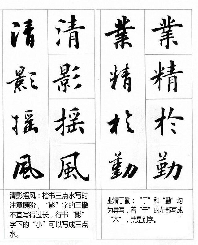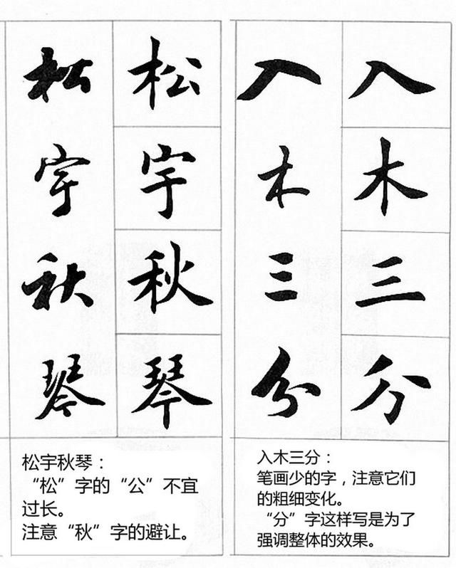 花点时间,仔细观察下面这些图片中楷书以及行书的结构,另外,认真阅读底部说明部分,对照图中的字进行揣摩,相信会给你的学习带来很大的收获。