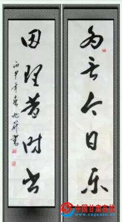 中国甘肃在线兰州讯(文/张奉刚) 品读刘旭昇的书法作品,使我眼前一亮;一股浓浓厚重、清新而富有传统意蕴风格的翰墨韵味扑面而来。其作品功深力厚,追求意趣,个性鲜明,赏心悦目,这与他50多年来的磨砺锤练是分不开的。