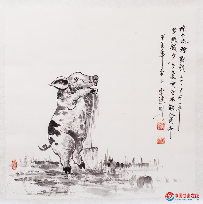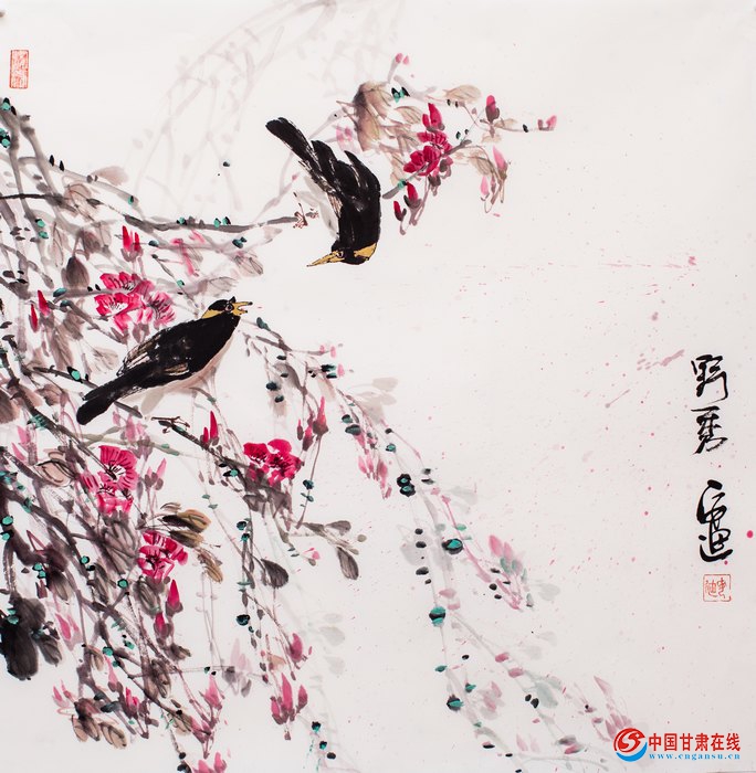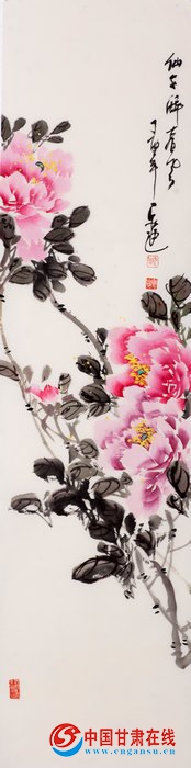 安小虎老师自幼酷爱书画艺术,自从在天水师范学校、西安美术学院毕业以来,十多年他凭着对艺术、生活的热情和执着,锲而不舍,每日笔耕不辍,仰慕历代名家及当代名家徐渭、吴昌硕、八大山人、齐白石等一代大师。他立足传统,刻意创新,从生活中涉取营养。他的书画题材涉及山水、花鸟、人物,尤擅长画牡丹等。其作品手法大胆,韵味淳厚,个性鲜明,具有时代特点。他告诉记者,在艺术的道路上只有博采众长,厚积薄发,付出艰辛的努力,才能创作出符合时代特点的精品力作。