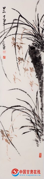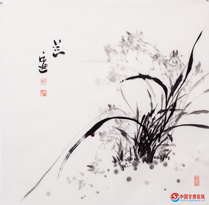 安小虎笔下的兰花孤傲清丽,狂狷不羁了,淋漓的笔墨中洋溢出洒脱和自在的气息。观其作品给人的视觉感是:迫狂飙而飞扬,或临大雨而不屈,或淋春分而依然;恬然悠闲,高洁优雅,有春分习习,清香阵阵;有仙子之飘逸,有屈子之孤高之感。