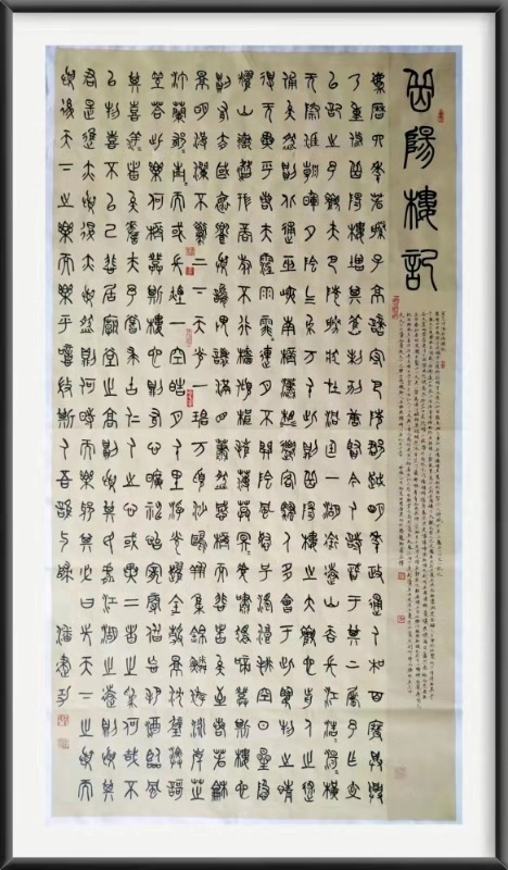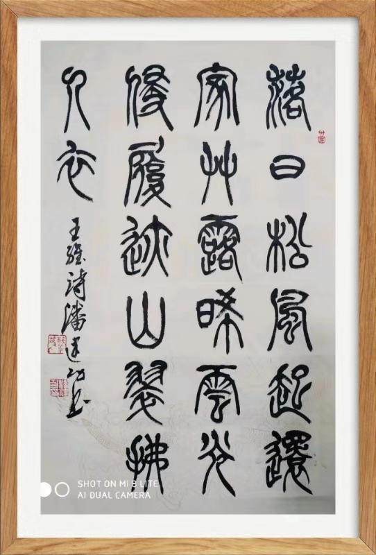 其实在书法教育中,潘建功更崇尚的一个词,就是“教学相长”。为了让学生们接受到系统的书法艺术知识,他查阅资料,不断修改教案,并结合自己的理解和笔法实践,力求每一节课都给学生们带去实用的知识。而学生们的每一次成长、每一次提问都给他带来了更多的收获,更多的创作启发。例如,在一次讲座中,潘建功给学生们讲书法发展史。讲到篆书中“祖”的写法为“且”时。一位学生很惊讶地说:“老师,您写的‘且’很像我家过年时在堂屋桌上供奉的祖先牌位。”这个学生看似随性的一句话,立马让潘建功茅塞顿开。“现如今,大多数书法家都在追求作品的艺术感,而往往忽视了中国汉字的本源。”潘建功感慨地说,中国汉字是世界上唯一没有中断的文字,经过数千年的变化,从简单的符号(甲骨文时期)到象形文、再到表意文字,最后从繁体字演变为简体字,每一次演变和传承都有内涵,都有历史赋予他特定的含义。例如“范”字,繁体字“範”:写“模范”时写“範”,但做姓氏时只写“范”;再譬如“里”字,繁体字“裏”“裡”,用在表示长度、居住时,如写“公里”“里程”“故里”只能写“里”,表示与外相反时,繁体字可用“裏”或“裡”。国内一位文化大家曾经将“故里”写成了“故裏”遭受了不少非议。因此,作为一名优秀的书法家,其文学修养是重中之重,而提起笔就能写字只会令人贻笑大方。对待学生作品的要求也是如此。一是要避免粗糙,追求精致,这要在技术精到、充分表达的前提下实现。二是要充分体现文化品位和文化品格,这要求作品语言表达不过火,形式选择不极端,画面感觉是和谐的,能够在文化的层面上表达得更雅致、更有格调、更有品位。三是书法艺术当随时代,通过笔墨表达这个时代的审美向往,表达书家的精神追求,充分展示和体现中华民族的民族气节、民族精神和民族品位。这既是他自己的追求,也是对学生创作的期待。