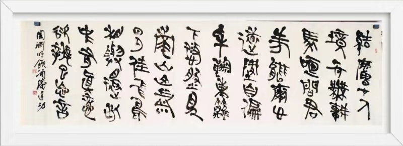 一幅成功的书法作品,往往是字里行间透露出娴熟的笔法、漂亮的结构和完美的章法,以及深远的意境。纵观潘建功的书法作品,其篆书婉转通畅、行笔圆转、线条匀净,好像是一串流动的音符,处处流露着神气娴雅。而这正得益于他对汉字本源的追求,回归了篆体象形文的特质,福就是福,德就是德。正所谓:即物印心,见字见人,有诸内必形诸外,其人之操行学养,胸次见识,资质禀赋悉寓于中矣。