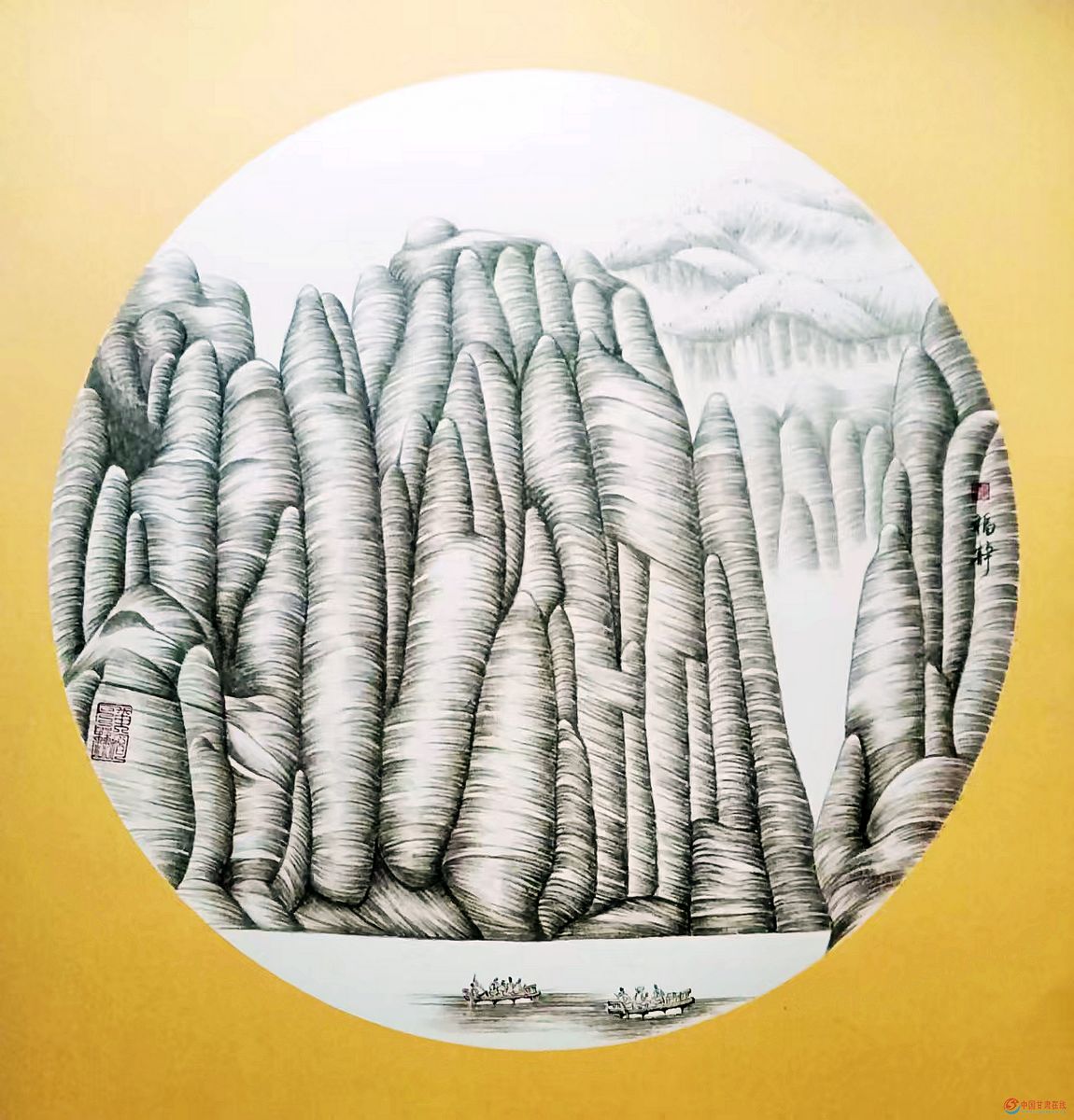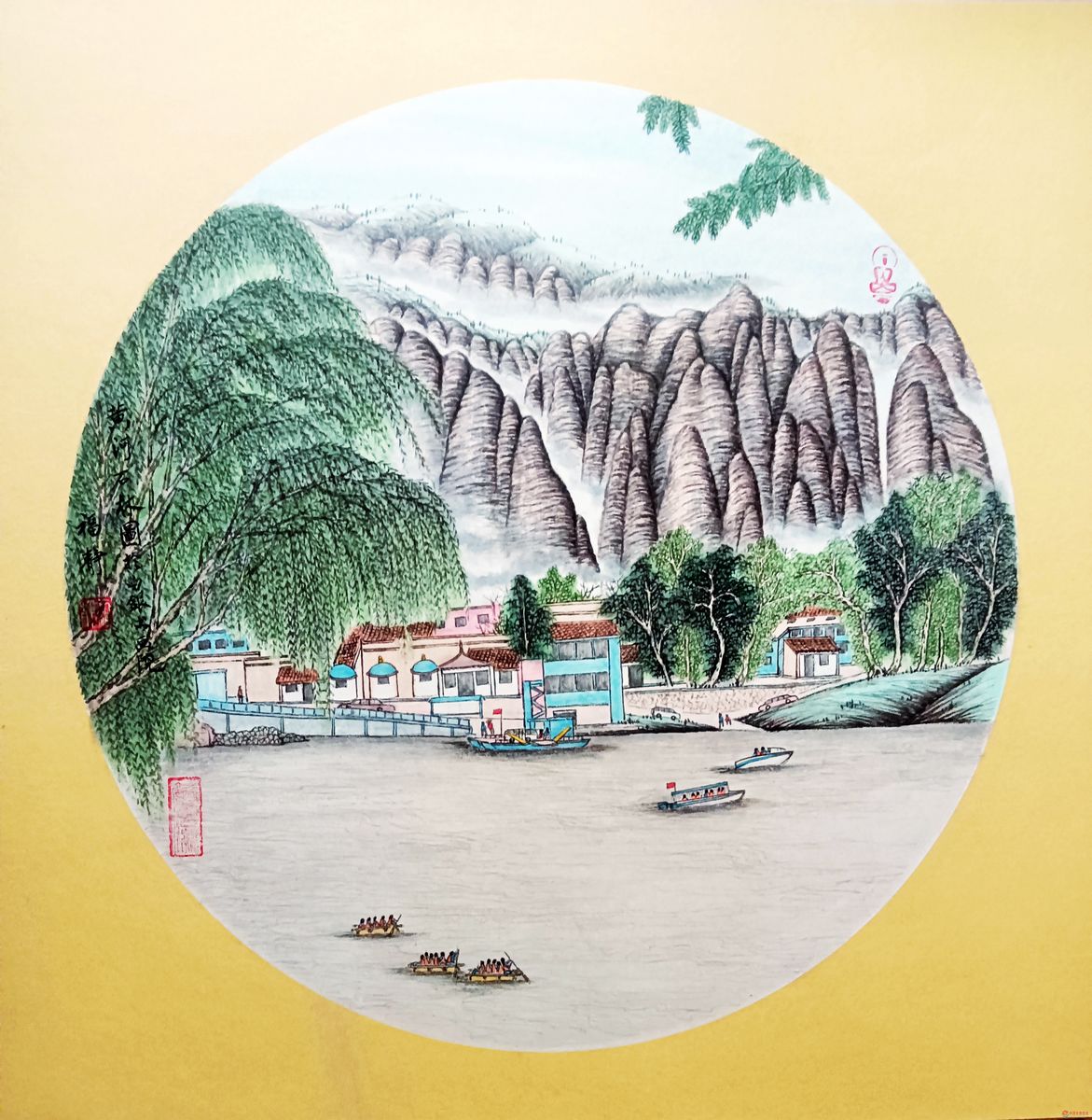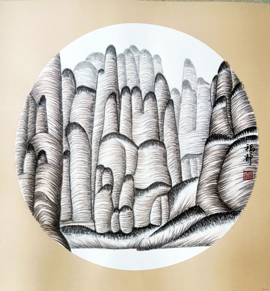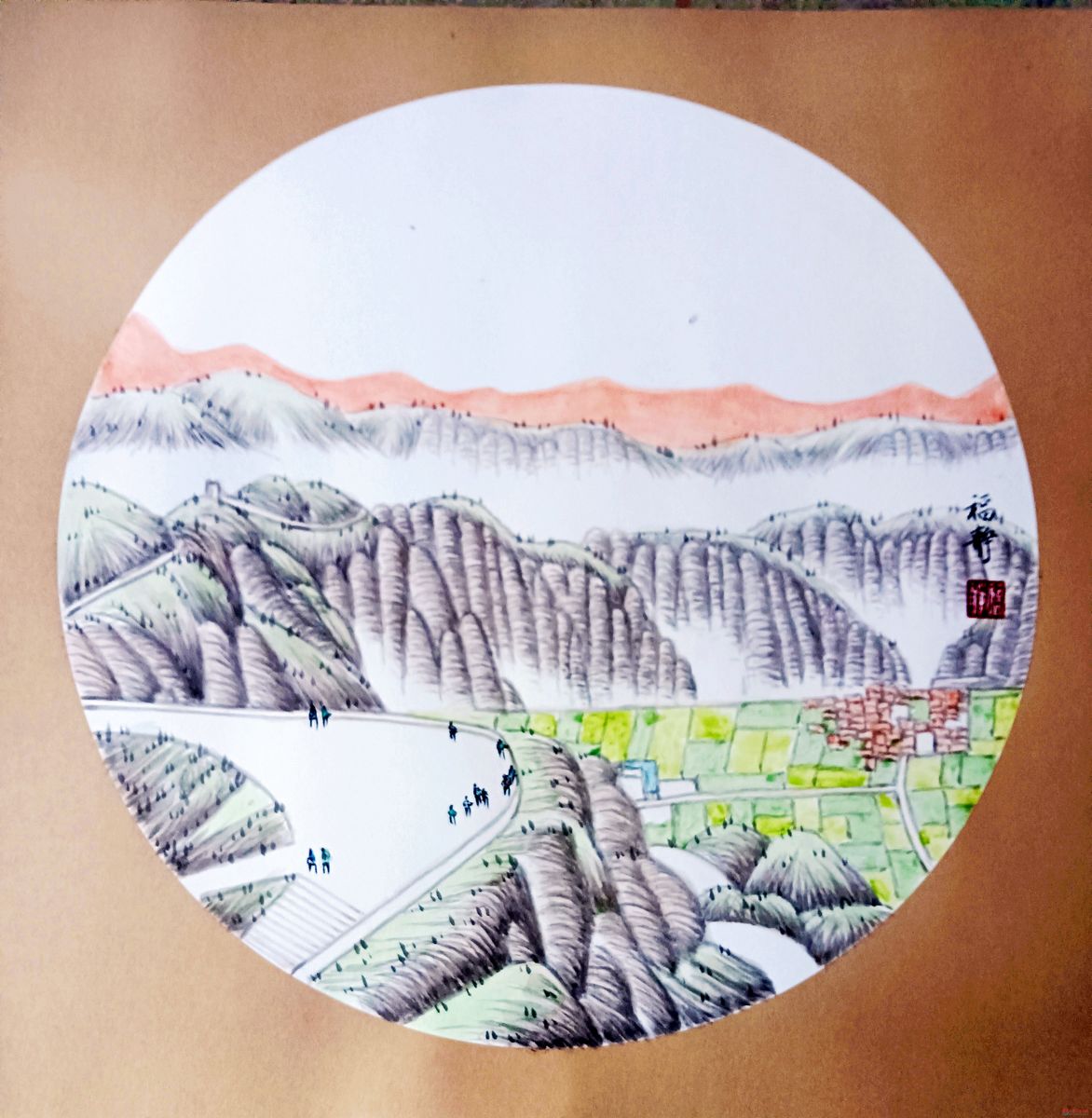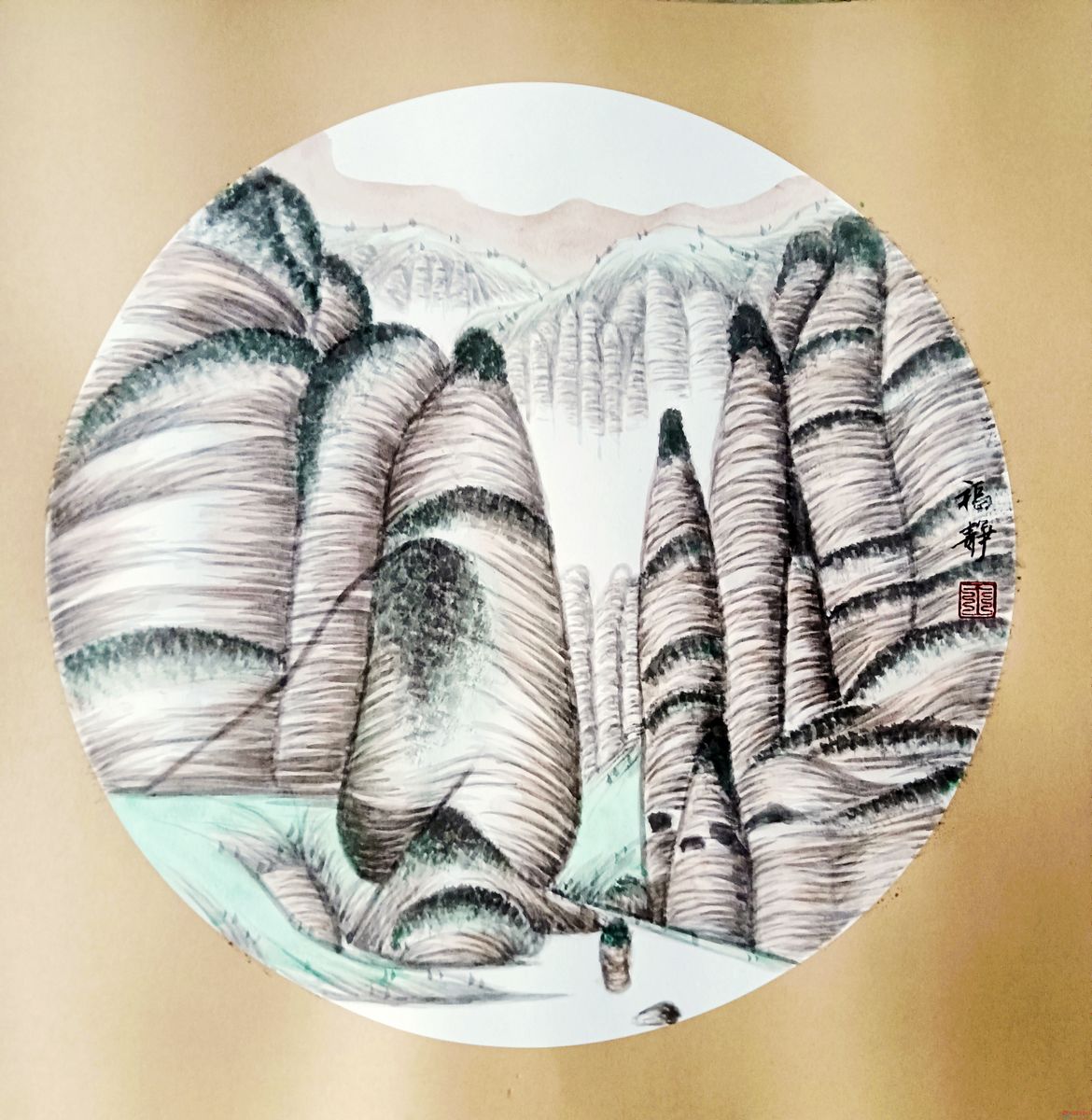 早期探索:青年时期醉心山水画创作,通过临摹、速写、素描等方式夯实基础,作品逐渐受到乡邻认可。在函大学习期间,受教于刘勃舒、姚治华、黄均等名家,系统研习白描、工笔重彩、写意人物、山水写生等技法,并注重“师传统”与“师造化”结合。
