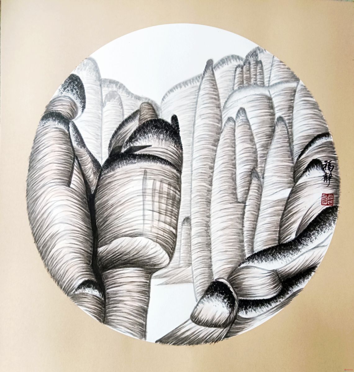 曾受国画大师娄师白指点,深受五代荆浩与清代石涛艺术理念影响,主张“学古不泥古”,形成以黄河石林为核心题材的独特山水画风格。