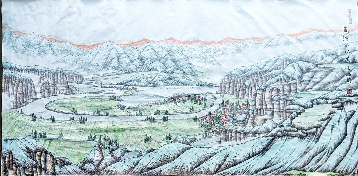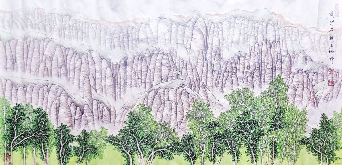 擅长以细腻笔法描绘黄河石林景观,融合笔墨朴素与色彩浓翠,作品兼具写实性与梦幻感,生活气息浓郁。其创作扎根西北自然风貌,注重表现山川的雄浑与生命力。