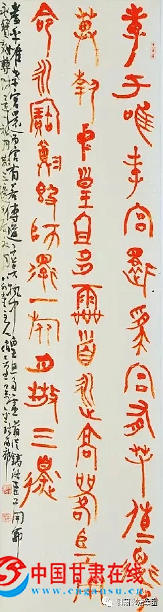 中国甘肃在线讯(作者:包永庄)豲道,在武山历史上是一个重要的地理标志,也是一个重要的文化标志;它承载了千年的风霜与文明的印记,见证了驼铃的悠扬繁华、孕育了独特的文化气韵、蕴含了岁月的漫长与厚重。但由于历史的演变,一个地方的名称或区域位置;往往出现一地数名,或一名数地的情况,豲道就是一例。豲道县治在何处?可谓众说纷纭,莫衷一是;但笔者还是倾向于裴应东先生,提出的豲道县治在今武山县桦林镇渭河北至谢家坡一带,南至范家坪天衢村周边的观点。因《汉书、地理志》、《汉书、元帝纪》、《辞海》、《中国古今地名大辞典》、《西汉政区地理》、郦道元《水经注、卷十七、渭水》等对均有记述,而20世纪70年代在桦林镇范家坪汉墓群出土的瓦当碎片等更加证实了这一点。加之,这里川地开阔,土地肥沃、灌慨便利,是发展农业生产的理想之地,是古代通往西域的交通咽喉,古丝绸之路东段南道。其次,战略地位异常重要,进可攻,退可守,自古兵家必争之地;陇西与武山交界处的哑而峡谷中,两边高山对峙,一夫当关,万夫莫开,成为交通天险。峡谷内曾出土过兵器,西侧山上有峰火台两座。据此,从交通、军事、政治、经济诸因素综合标衡,此处都应是秦汉豲道县治理想的选择之地。著名书法家杨俏童就出生在这方有着秦陇古风,民族融合交汇,笔墨的基因融入山川肌理的土地上;远在中学读书的少年时代,因刺绣能手母亲的耳濡目染,不断从家乡传统文化中汲取养分,以笔为犁,在有光纸上耕耘出了属于自己的艺术天地,得到了老师和乡亲们的肯定。70年代后期在村学当代课教师的他,参加高考被高校录取,毕业分配于兰州石化公司后,工作之余随着不断地临帖研习,投师问路,循序渐进,厚积薄发,其书法作品有了质的飞跃,形成了自己鲜明的个性;如古豲道的碑刻碎片,既带着历史的沉郁,又透着时代的清辉!