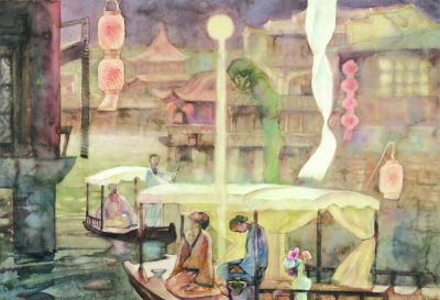 《秦淮梦之二》 水彩画 60厘米×90厘米 1991年 中国美术馆藏