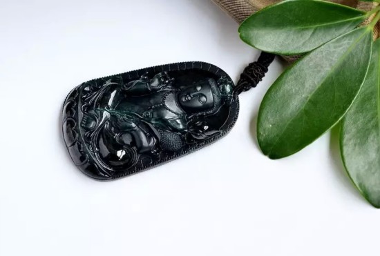 初看黑得发亮,很容易使人误认为是独山玉中的墨玉或其他的黑色宝玉石。在自然光下呈浓墨黑且有油性,但在透射光下观察,则是呈半透明状,且黑中透绿,特别是薄片状的墨翠,在透射光下颜色喜人。缅甸人用“情人的影子”来形容黑色的硬玉,中国人为其取名为“墨翠”。