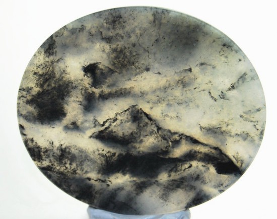 黑冰是灰黑至深黑色的翡翠,98%以上为硬玉,属单矿物岩,结构紧密细腻。黑色是在地表下翡翠形成时产生的,常由有机碳渗入而成。业界内,因其质地飘黑,仿佛一幅水墨山水画,老行家也称其为“水墨画种翡翠”。