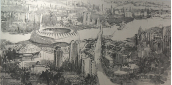 时至今日,全运会在津举办,全国举国欢腾,在观看赛场上体育健儿奋力拼搏景象的同时,城市画派艺术家们也在描绘天津的美丽风貌,助力全运会在津圆满举行,其意义重大,别样精彩的画面展示出艺术家们为全运会加油助力的笔墨豪情。全运会赛场精彩,绘津城艺术展此处独特画面可见一斑。
