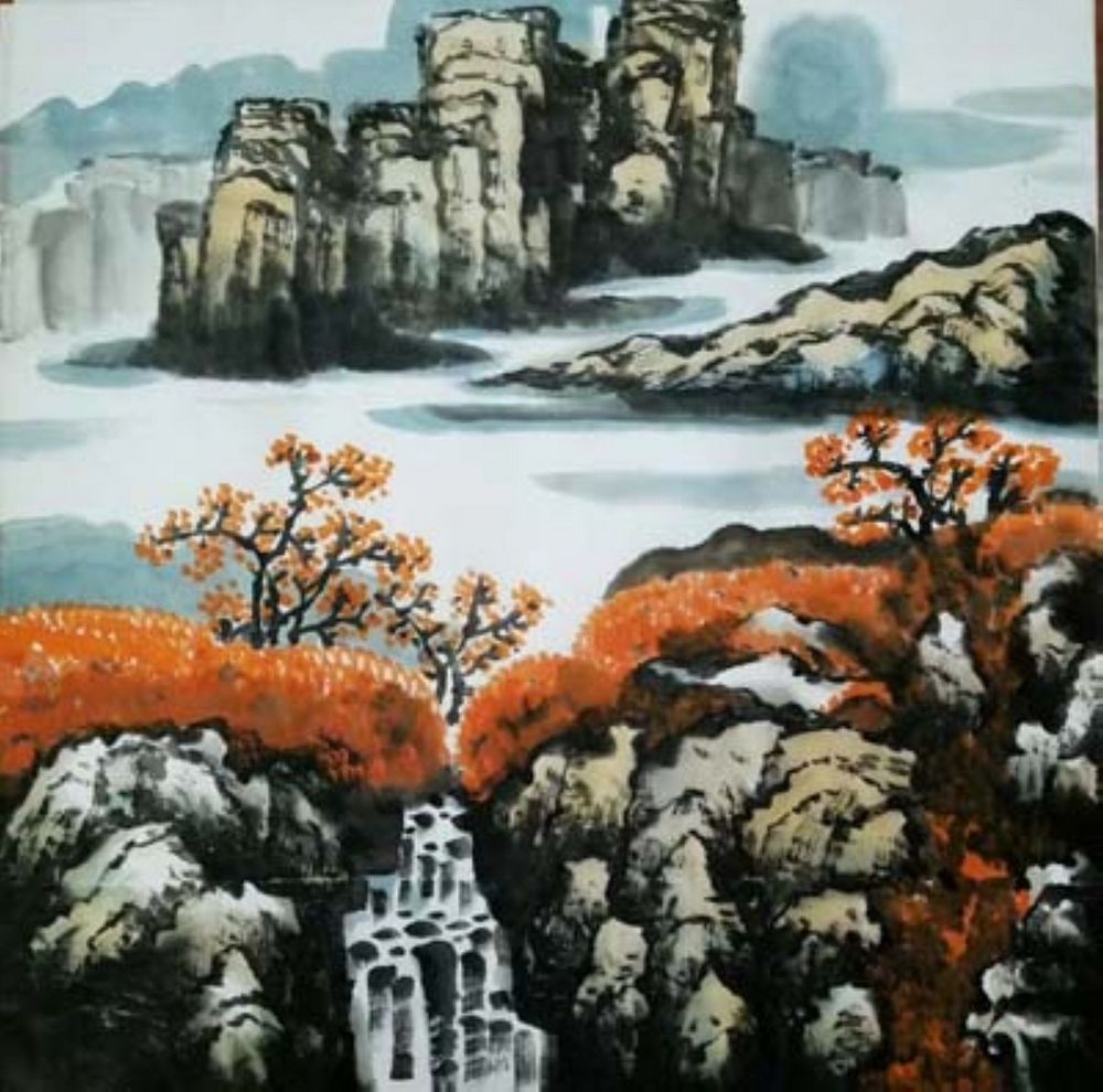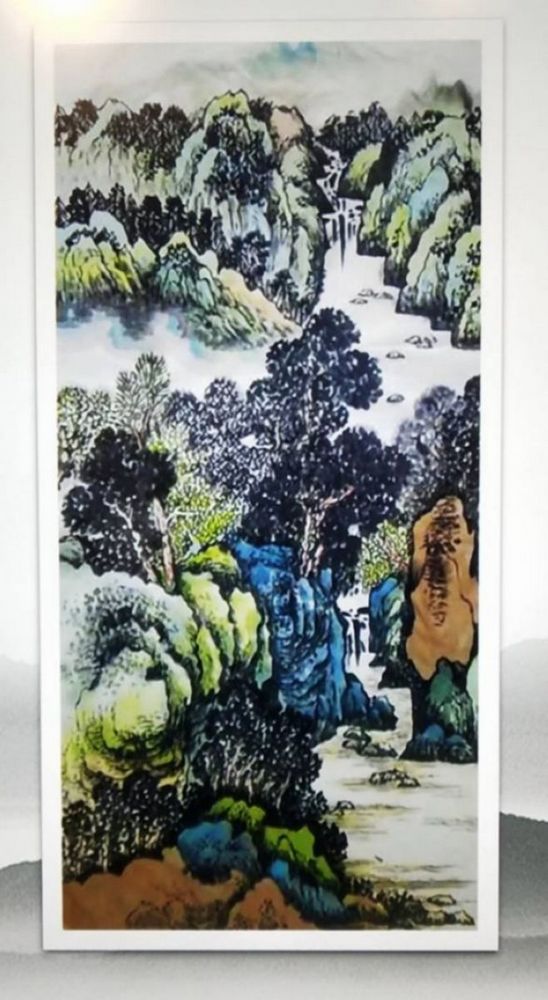 山水画“一天秋色冷晴湾,无数峰峦远近间。闲上山来看野水,忽于水底见青山。”作品典雅中蕴含着强烈的苍茫磅礴之气势;