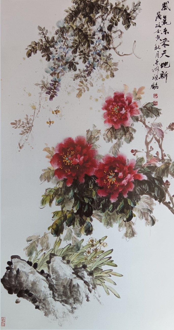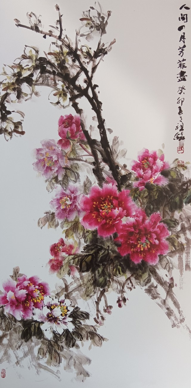 如今,这位享有“西北牡丹王”美誉的当代花鸟画大家虽已年逾八秩,然而王祖铭先生深谙艺道无终,他对大写意花鸟画的理解和认知仍在不断深化,以心血化成的一幅幅丹青佳作仍在不断涌现,夕阳正艳,满目春光,王祖铭先生在持续创造美术精品的同时,广收门徒,传道授业,薪火相传,不断赓续着中国花鸟画艺术的发展;他博大的艺术襟怀以及高尚的人品艺德、杰出的艺术成就和广泛的艺术影响,有助于我们进一步解决继承与创新、传统与现代、艺术与生活、民族与世界等问题,而且对于推动当代大写意花鸟画艺术的创作和发展都有着积极而又深远的意义。