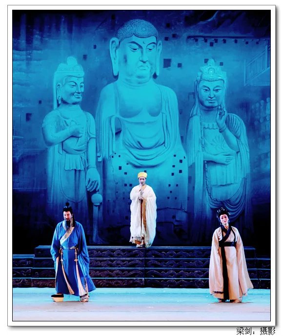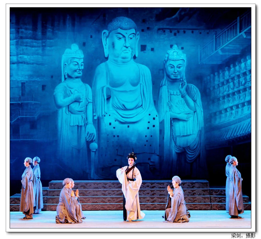 《麦积圣歌》由甘肃省著名女编剧曹锐执笔,中国戏剧梅花奖得主窦凤琴、中国秦腔四小名旦袁丫丫领衔主演的大型原创历史秦剧《麦积圣歌》,其跌宕起伏的情节和演员精湛的表演赢得了现场观众的记忆幽深。该剧以麦积山石窟44号窟乙弗氏的真实故事为基点,塑造了一个为国为民,识大体、顾大局、具大仁、有大义的伟大女性形象;同时给秦腔唱腔融入了现代的因子和音符,为青年观众喜欢和接受,扩大了受众面-----!(摄影:梁剑)