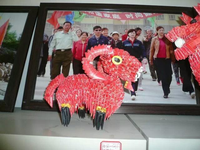 一盒烟抽完后,烟盒能做什么?折一个千纸鹤、青蛙、衣服……这些都out了!在45岁的魏建娥手中,烟盒可以折出天鹅、龙、桌椅、龙船等立体作品,而且每件作品都栩栩如生。