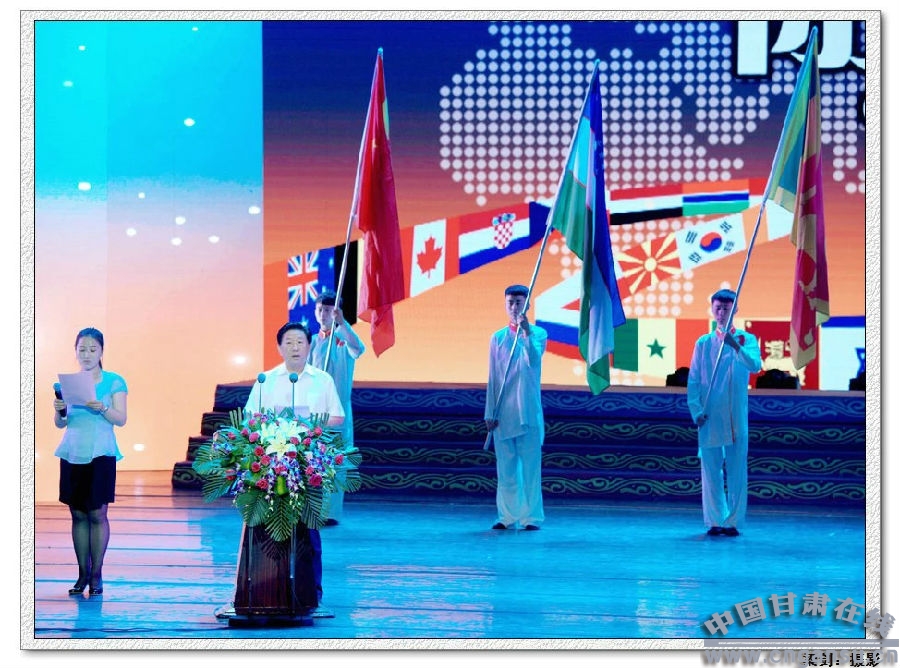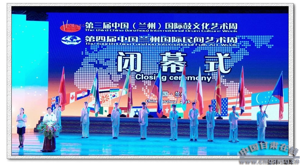 7月9日晚上8点在甘肃省兰州市金城大剧院,举行第三届中国(兰州)国际鼓文化艺术周,暨第十四届黄河风情文化艺术周闭幕式--鼓舞中国,精彩演出让参加本次艺术周的300多名来自11个国家波兰、俄罗斯、哥伦比亚、马其顿、塞尔维亚、斯里兰卡、乌兹别克、印度尼西亚、印度、埃及、尼泊尔,和中国兰州代表队(兰州群星舞蹈团成员)共同感受中华民族古老鼓文化传承,增强了友谊。