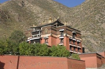 拉卜楞寺位于夏河县城西0.5公里处。本名噶丹夏珠卜达吉益苏奇贝琅,简称扎西奇寺,是藏传佛教格鲁派(黄教)六大寺院之一。寺院坐北向南,占地总面积86.6万平方米,建筑面积40余万平方米,主要殿宇90多座,包括六大学院、16处佛殿、18处昂欠(大活佛宫邸)、僧舍及讲经坛、法苑、印经院、佛塔等。拉卜楞寺宗教体制的组成以闻思、医药、时轮、吉金刚、上续部及下续部六大学院为主,在全蒙藏地区的寺院中建制最为健全。闻思学院是其中心,又称大经堂,有前殿楼、前庭院、正殿和后殿共数百间房屋,占地十余亩,为藏式和古宫殿式的混合结构,顶上有鎏金铜瓦、铜山羊和法轮、幡幢、宝瓶等装饰物。