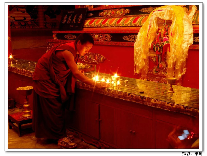 藏语称却典堂扎喜达吉琅,汉意为宝塔滩吉祥兴旺洲。是天祝十四寺院之首,始建于唐代,建筑辉煌,规模宏大。其前身是唐宪宗时所建的藏传笨教寺院,当时称雍仲寺。明朝中期,宗喀巴创立的格鲁派兴起,逐渐替代了宁玛、噶举诸派,明万历年间,改天堂寺为格鲁派寺院。寺院傍山而筑,外观气势恢宏,内藏很多珍贵文物,是天祝藏区规模最大的藏传佛教寺院,也是北方五大名刹之一。有世界上最高的木雕宗喀巴佛像。寺内壁画、堆绣和酥油花设计严谨,技艺精湛。1998年以来,信教人士捐资先后修建了千佛殿、小布达拉、大经堂等佛教殿堂。寺后绝壁有一石洞,系宗喀巴大师弟子华锐坚参巴苦修之地。(摄影:梁剑)