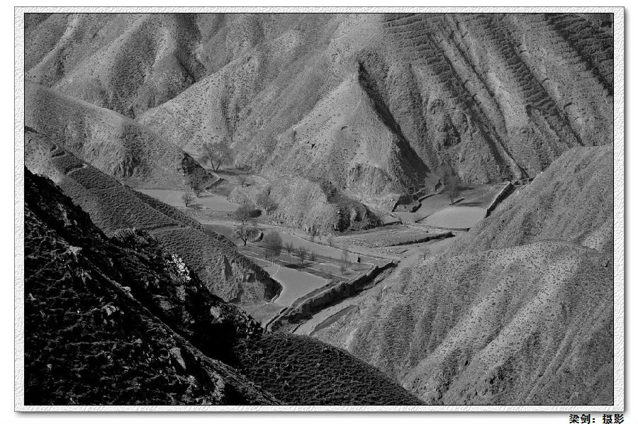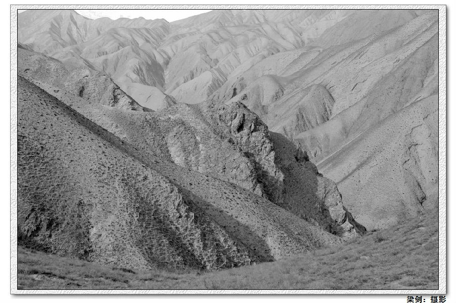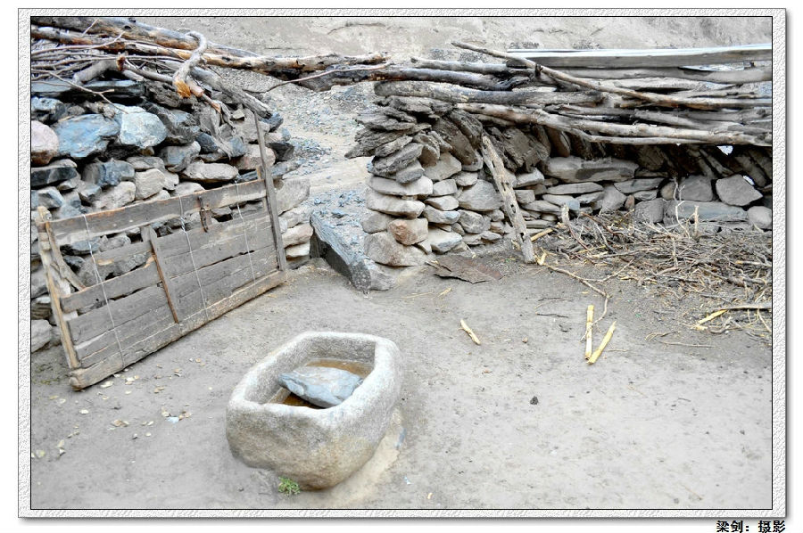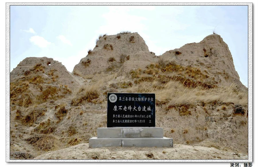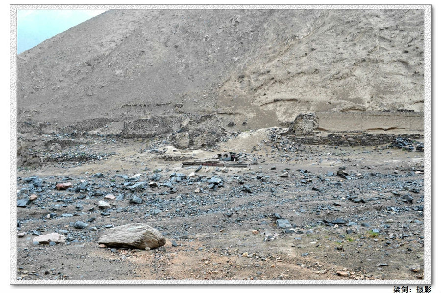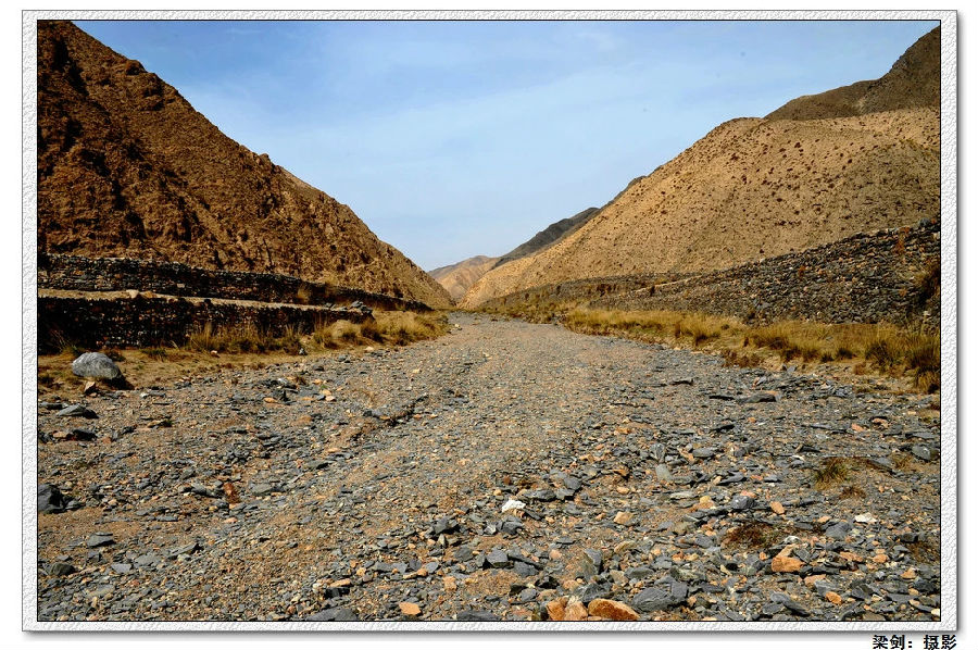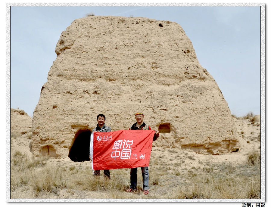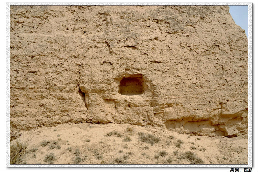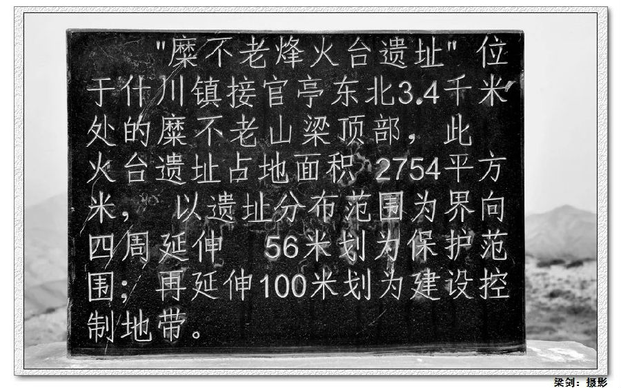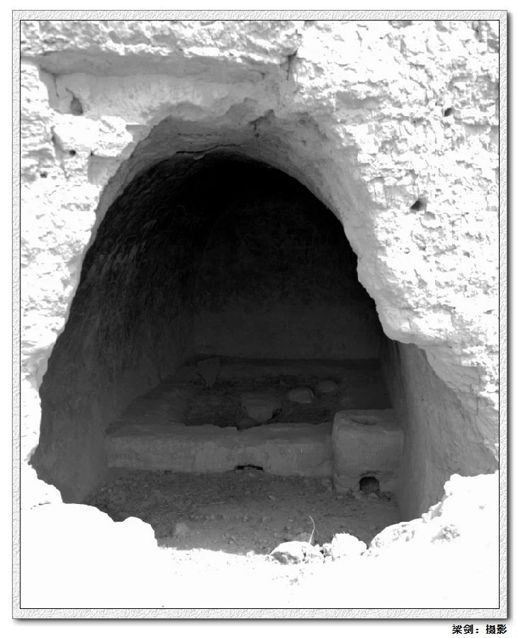 我们找路准备攀登糜不老墩,糜不老墩是就近烽火台最高的,山大沟深我们无法将自己的背囊背上山,就寻找山洞将三个大包放在山洞内,带上吃的、水和照相机,经过3个半小时上下,拍摄纪录了糜不老墩烽火台的结果。(摄影:梁剑)