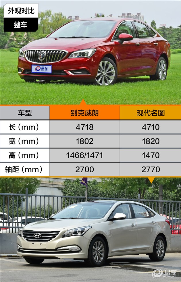 | 项目\车型 | 别克威朗 | 现代名图 |