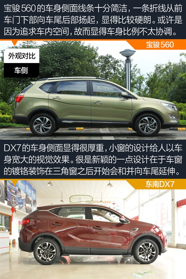 随着市场需求越来越大,国产品牌纷纷奔至SUV阵营中捉对厮杀,而且这其中不乏一些热卖的车型,甚至有着部分厂家凭借着某一款SUV车型扭亏为盈的例子,就在最近,宝骏560上市了,这款以宝骏730为蓝本打造而来的SUV车型空间大到没朋友的地步,而东南孕育已久的SUV车型DX7也将于不久之后上市,作为两个国产厂商中的实力派选手,旗下的车型自然实力不容小觑,今天就让我们将这两个SUV新生拉到一起真刀真枪的比一比。