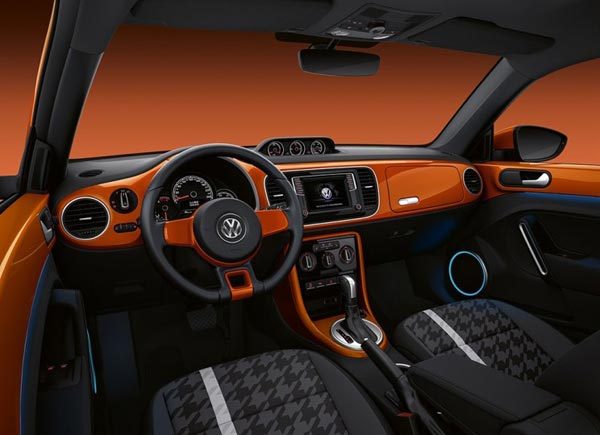 作为一款特别版车型,甲壳虫乐动橙版的橙色车身是其最大亮点,R-Line风格外观组件(含前后保险杠)将橙色衬托得更具运动气息。同时新车将配备17英寸“Turbine”轮圈、LED后尾灯与双氙灯(带LED日间行车灯)、全景天窗、电动调节外后视镜(带有加热功能)、前雾灯(可用作弯道辅助照明)等。